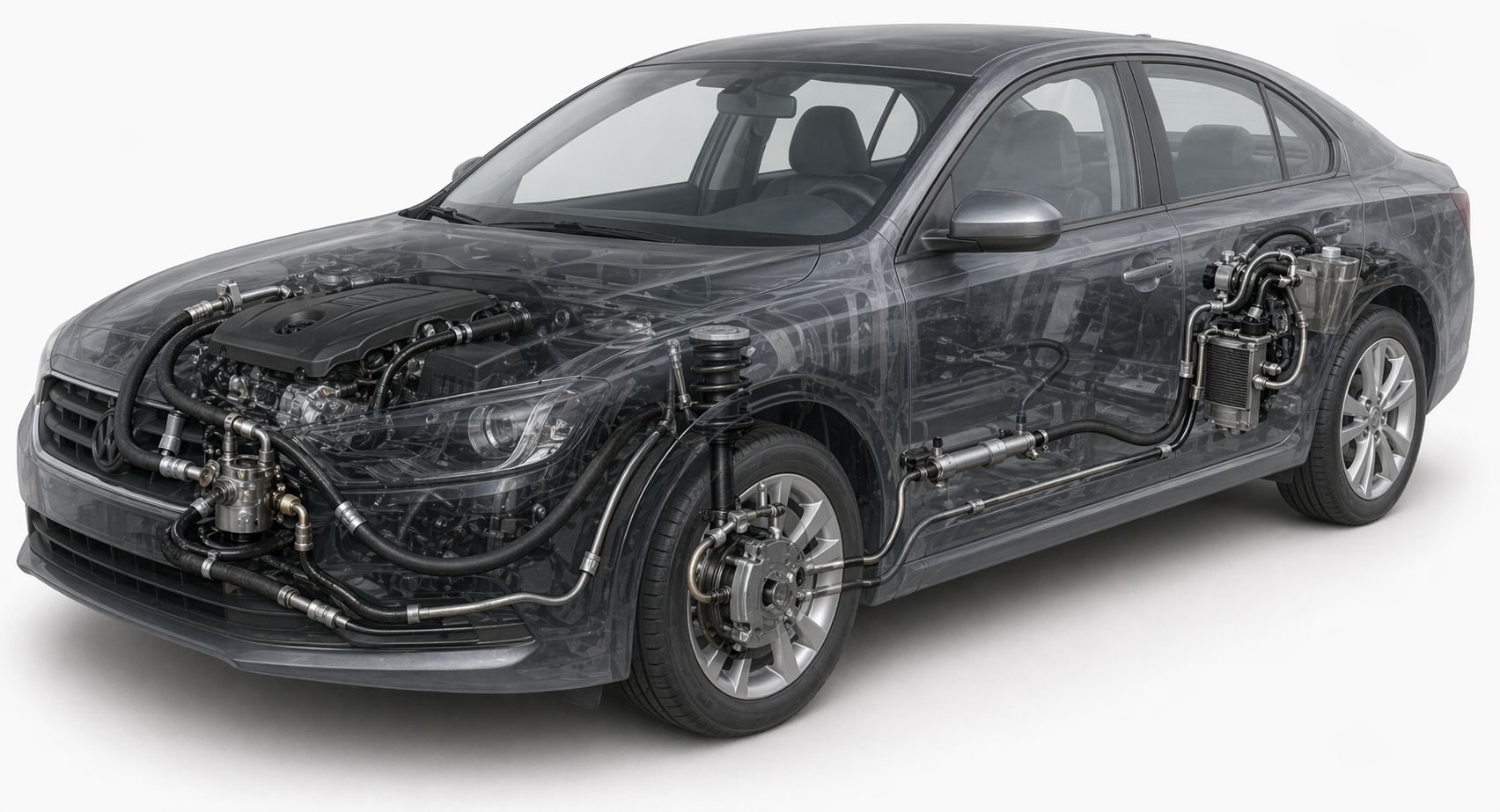 В тормозной системе РВД в машине работает иначе: давление кратковременное и очень высокое — до 150–200 бар в момент экстренного торможения. Шланг при этом практически не изгибается, зато испытывает ударные нагрузки.